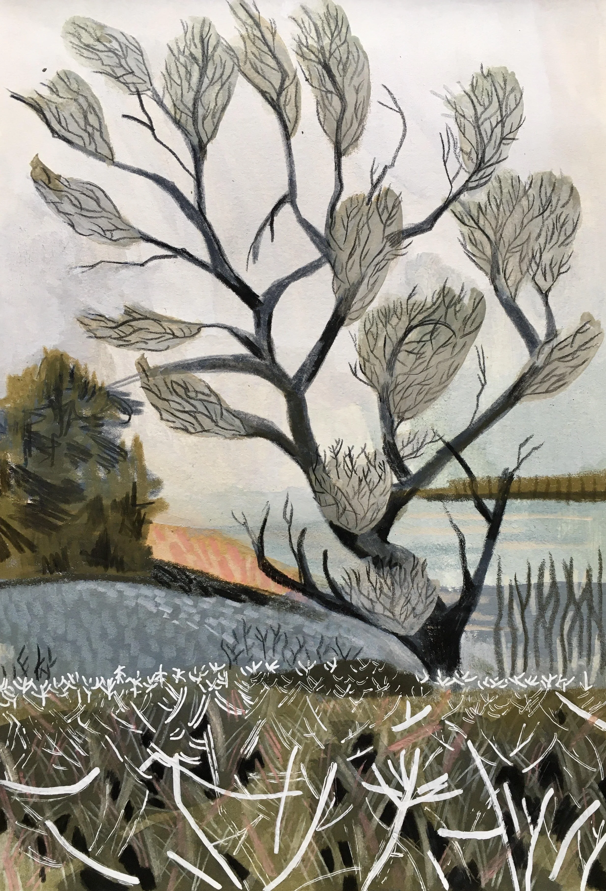 Whether I’m drawing, painting, or printmaking, I respond intuitively to the atmosphere a place evokes—its mood, texture, memory. I use expressive mark-making and restrained palettes to distil that feeling into image.